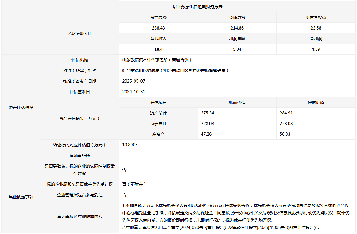 轉讓方: 煙臺市福山區(qū)財政局(煙臺市福山區(qū)國有資產監(jiān)督管理局)