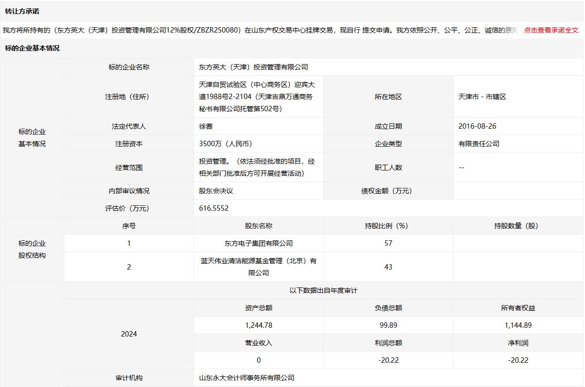 東方英大(天津)投資管理有限公司12%股權